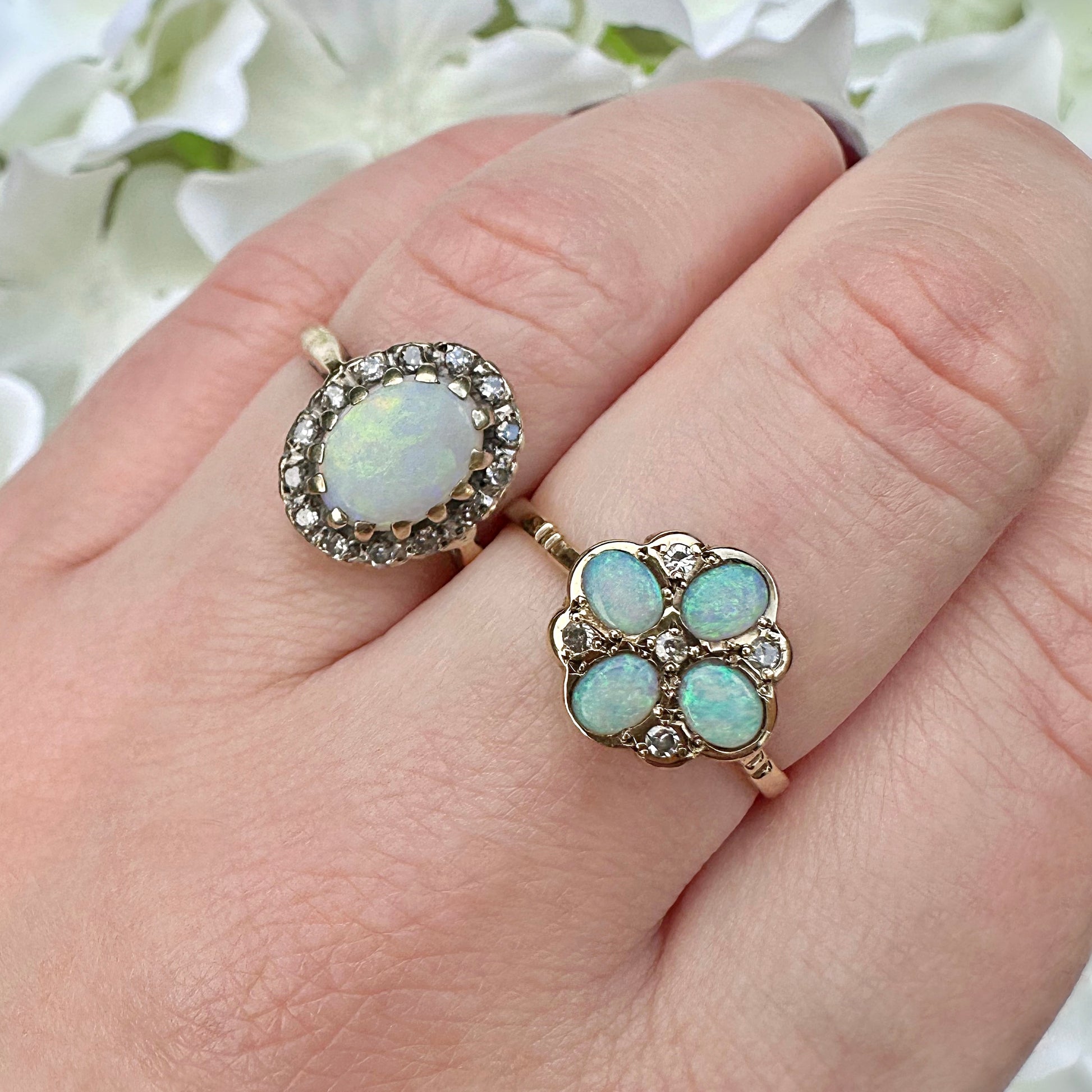 Clara 9ct Opal and Diamond Vintage Halo Ring