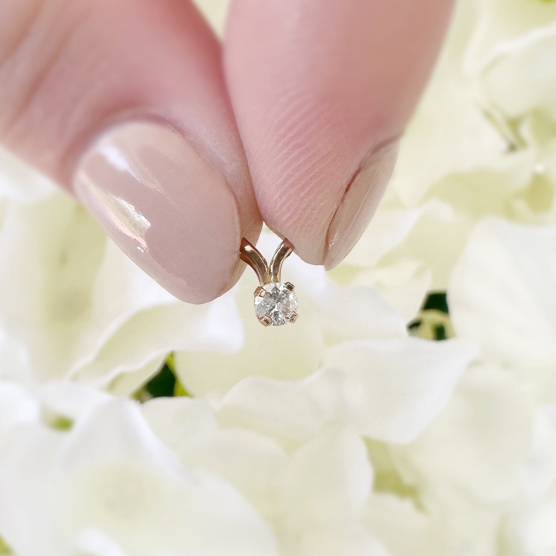 A vintage diamond pendant, featuring a dainty split bail design in 9k gold.